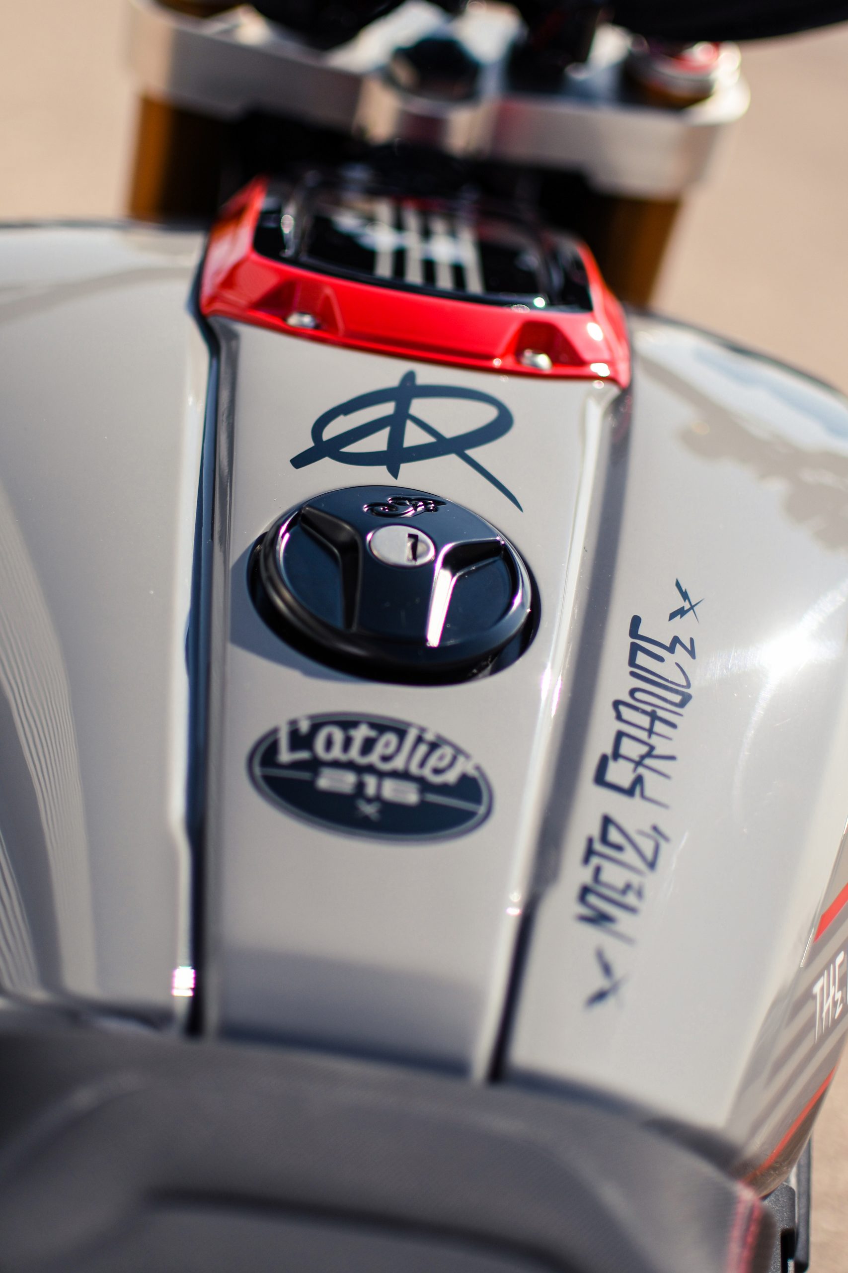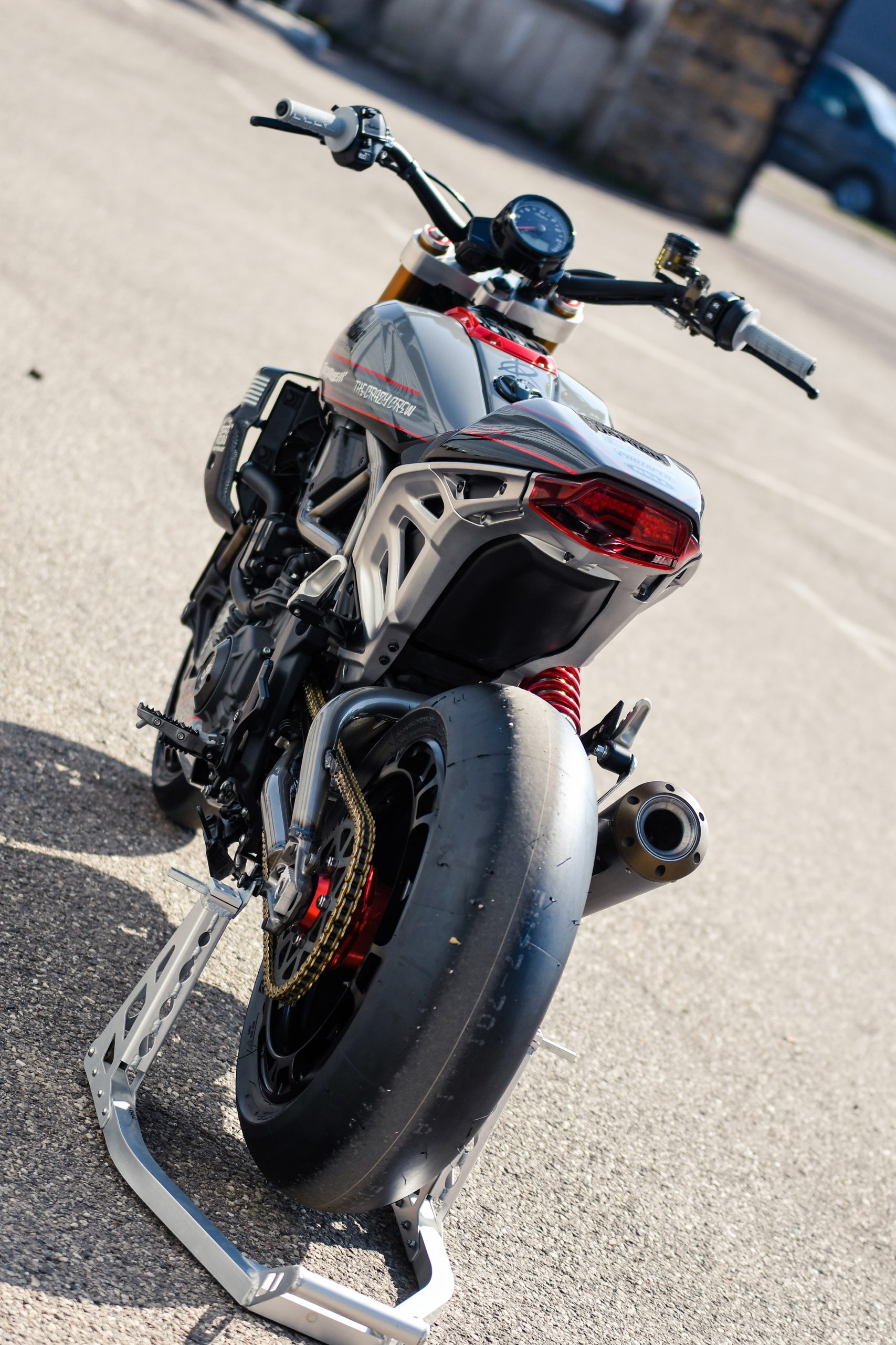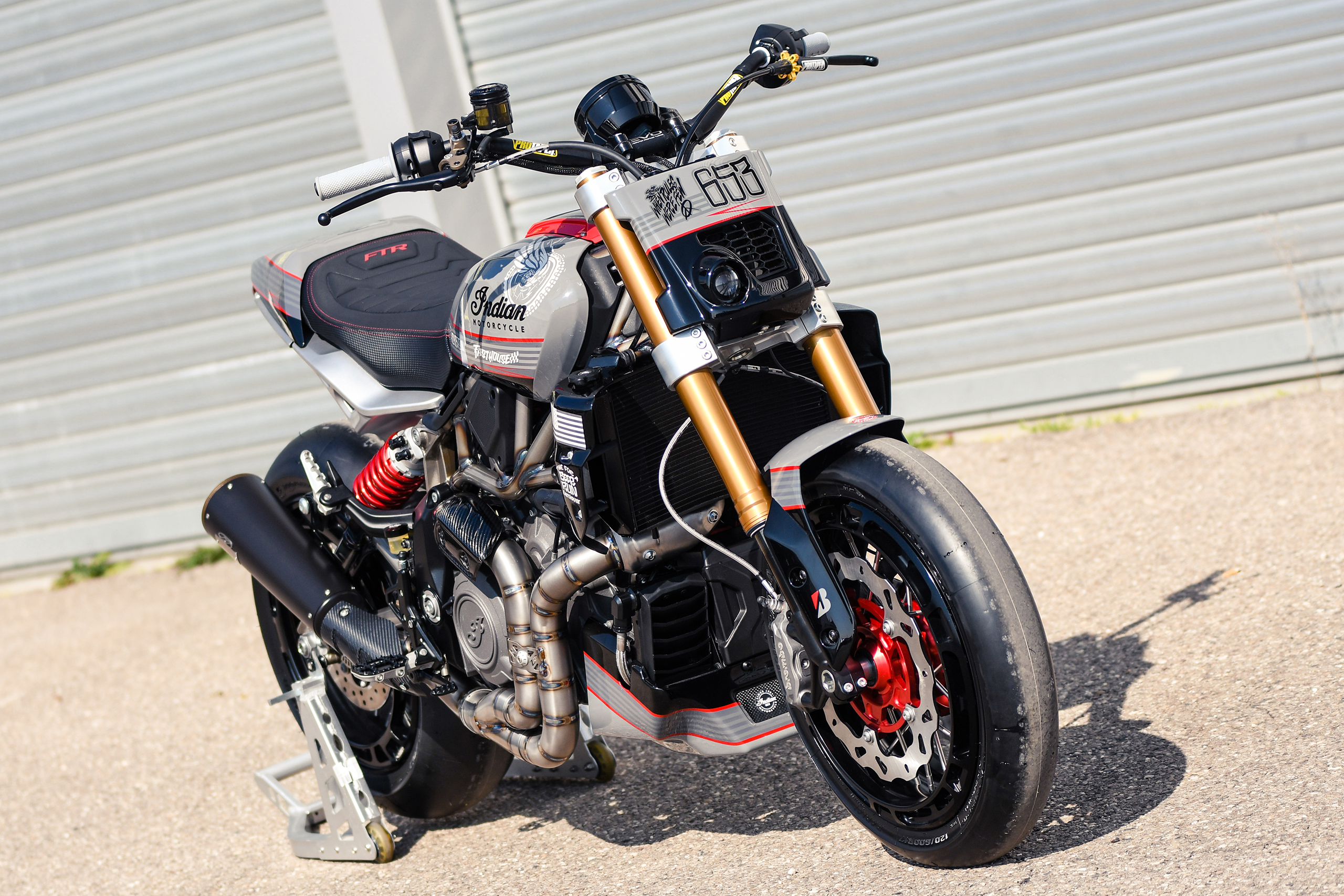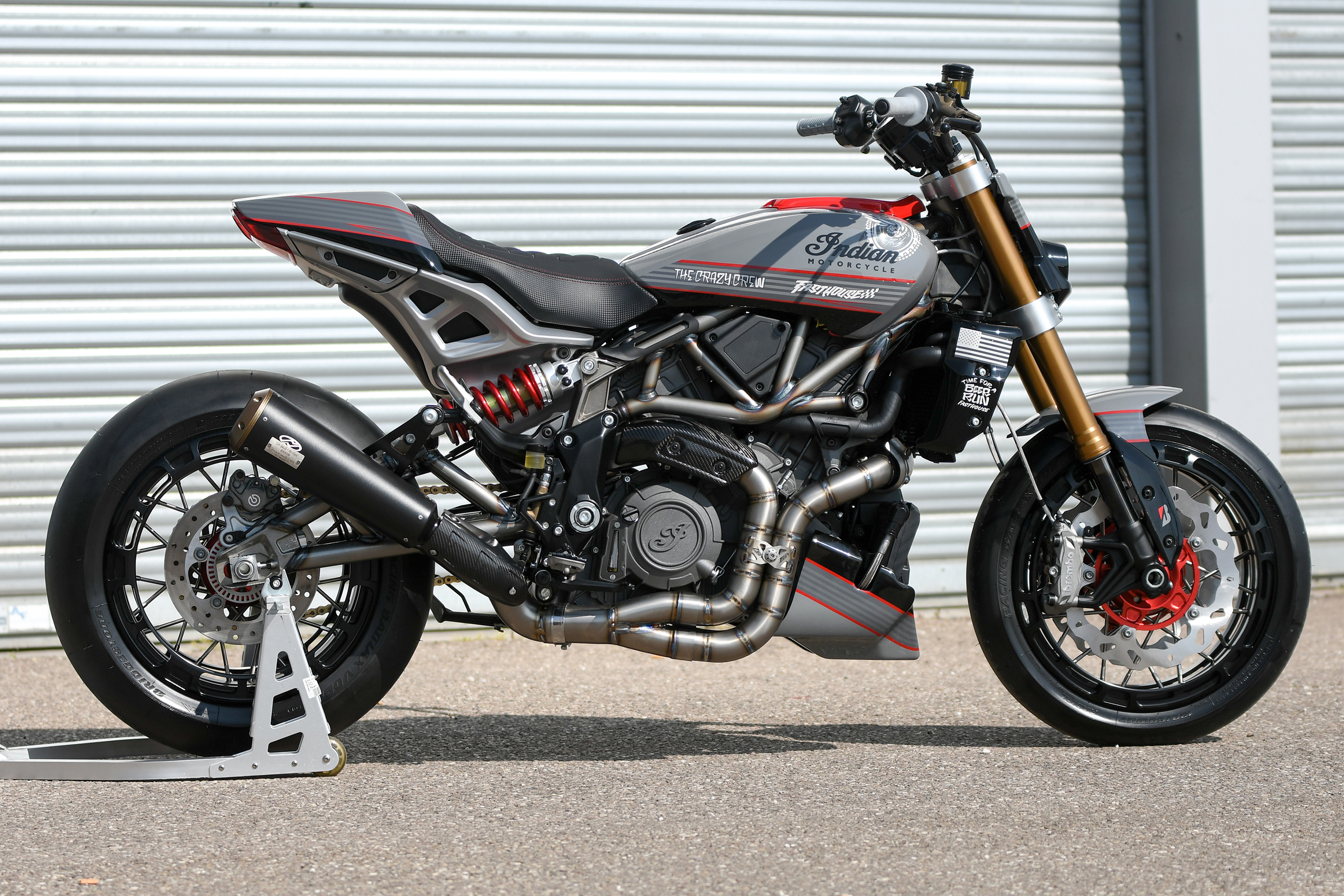 Après avoir construit une foule de customs basées sur la plate-forme, Thomas Castany et Alexis Masin d’Indian Metz ont décidé qu’ils voulaient quelque chose d’amusant et de ludique, et se sont inspirés du monde du motocross freestyle. Bien sûr, ils n’étaient pas intéressés par les backflips ou les whips, l’idée était de créer quelque chose qui prenait le plaisir du FMX et le traduisait sur la route. Combinant avec leurs amis de L’Atelier 216 et des sponsors tels que Fasthouse, les travaux ont rapidement commencé. J’ai eu l’immense chance de shooter la bête !