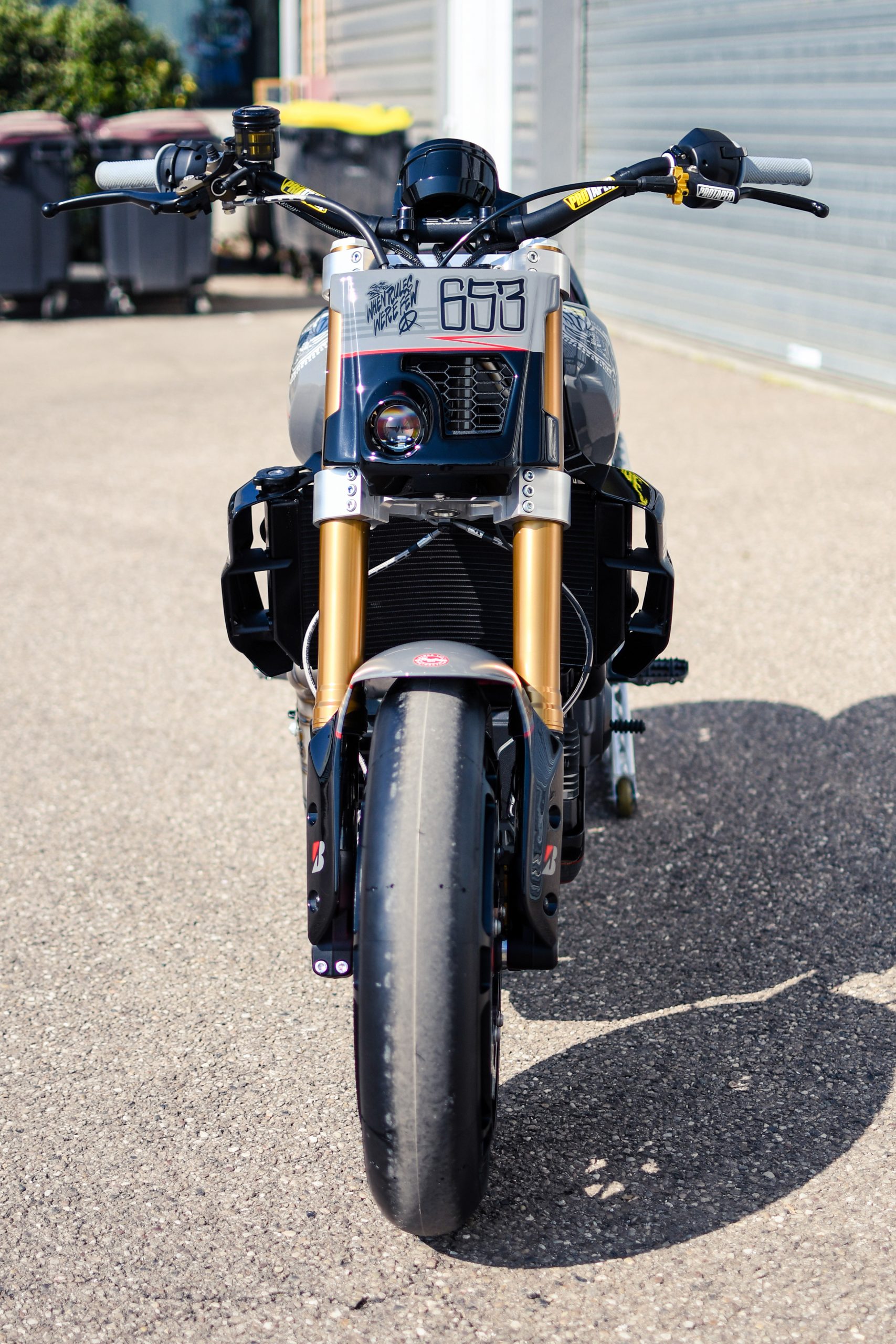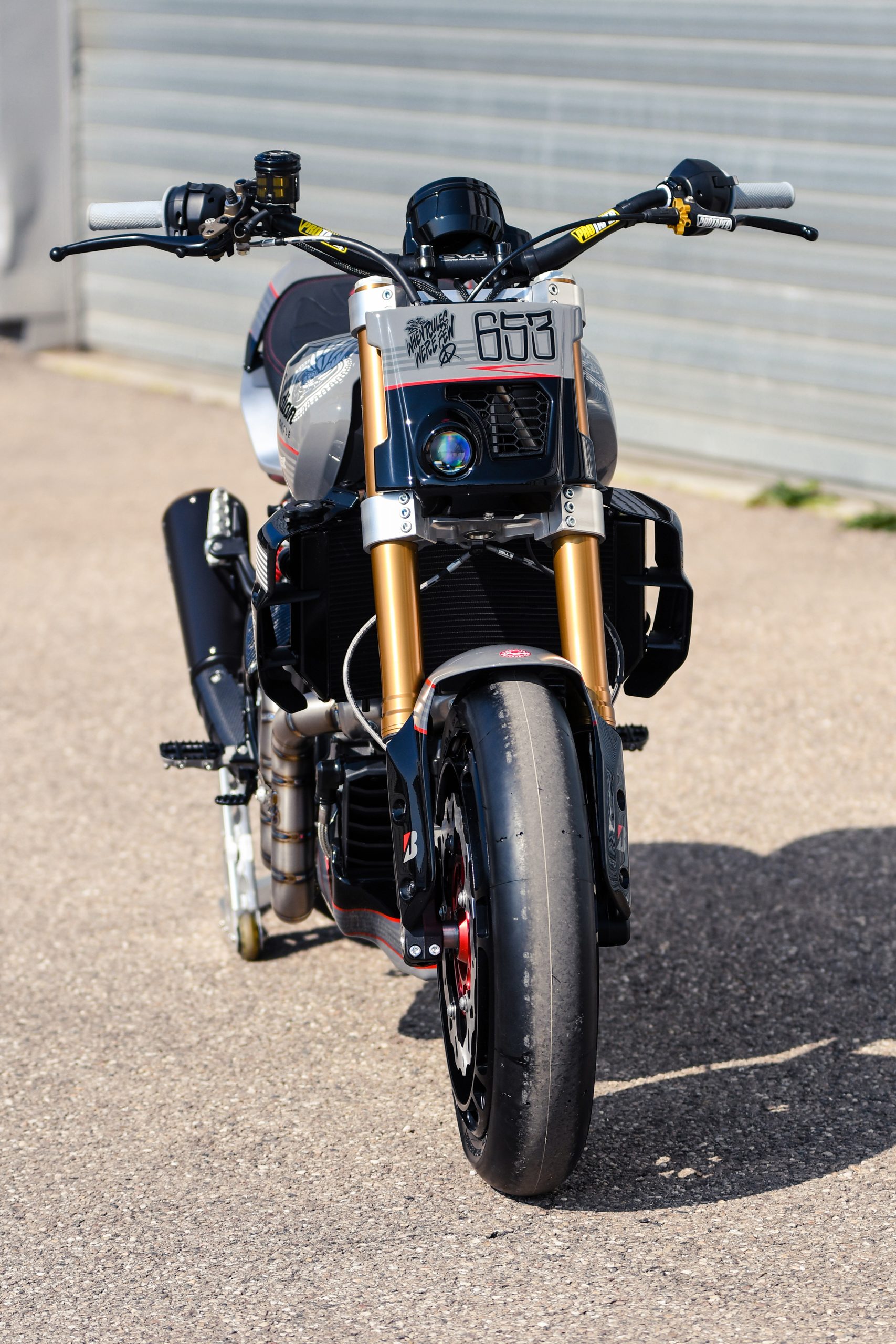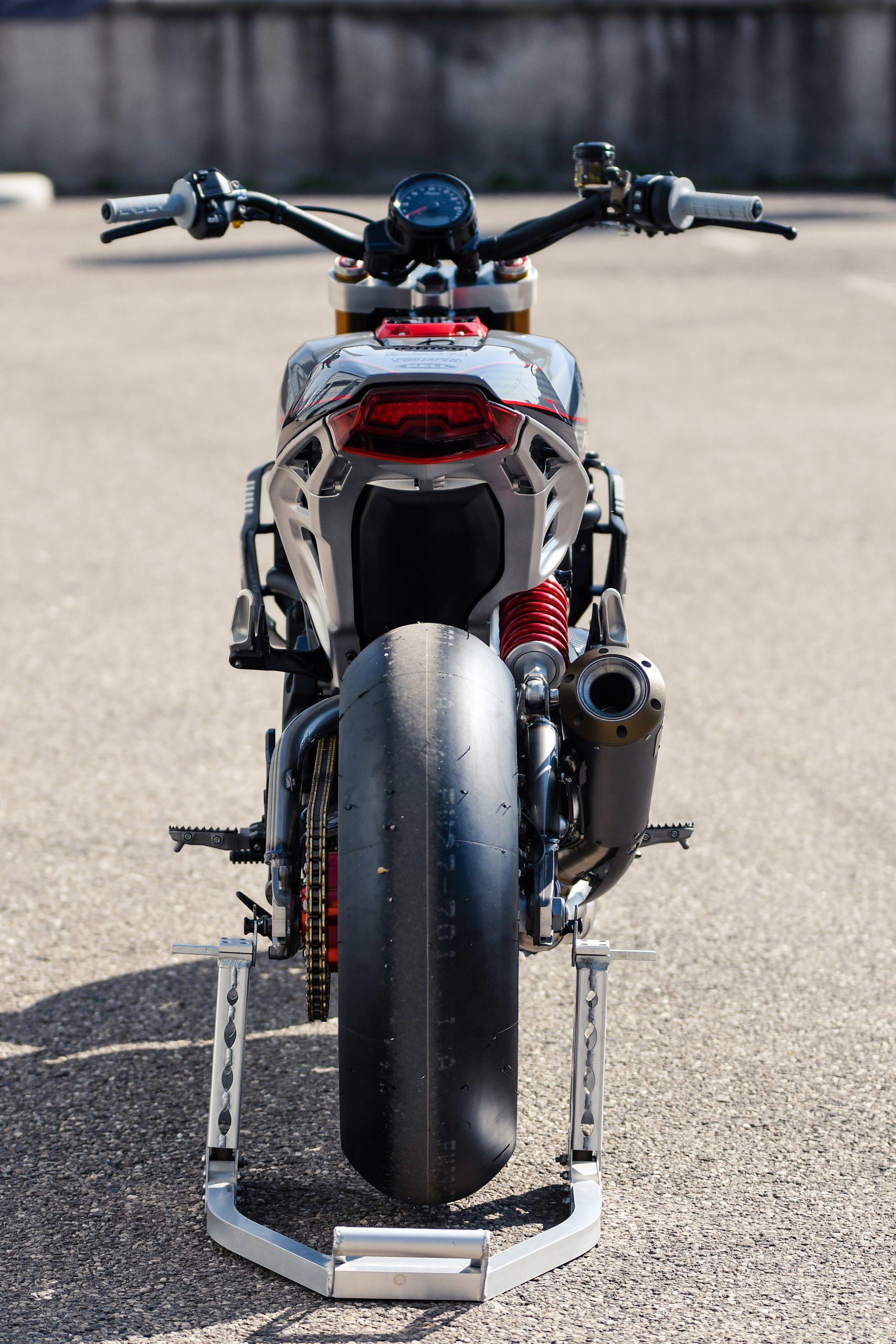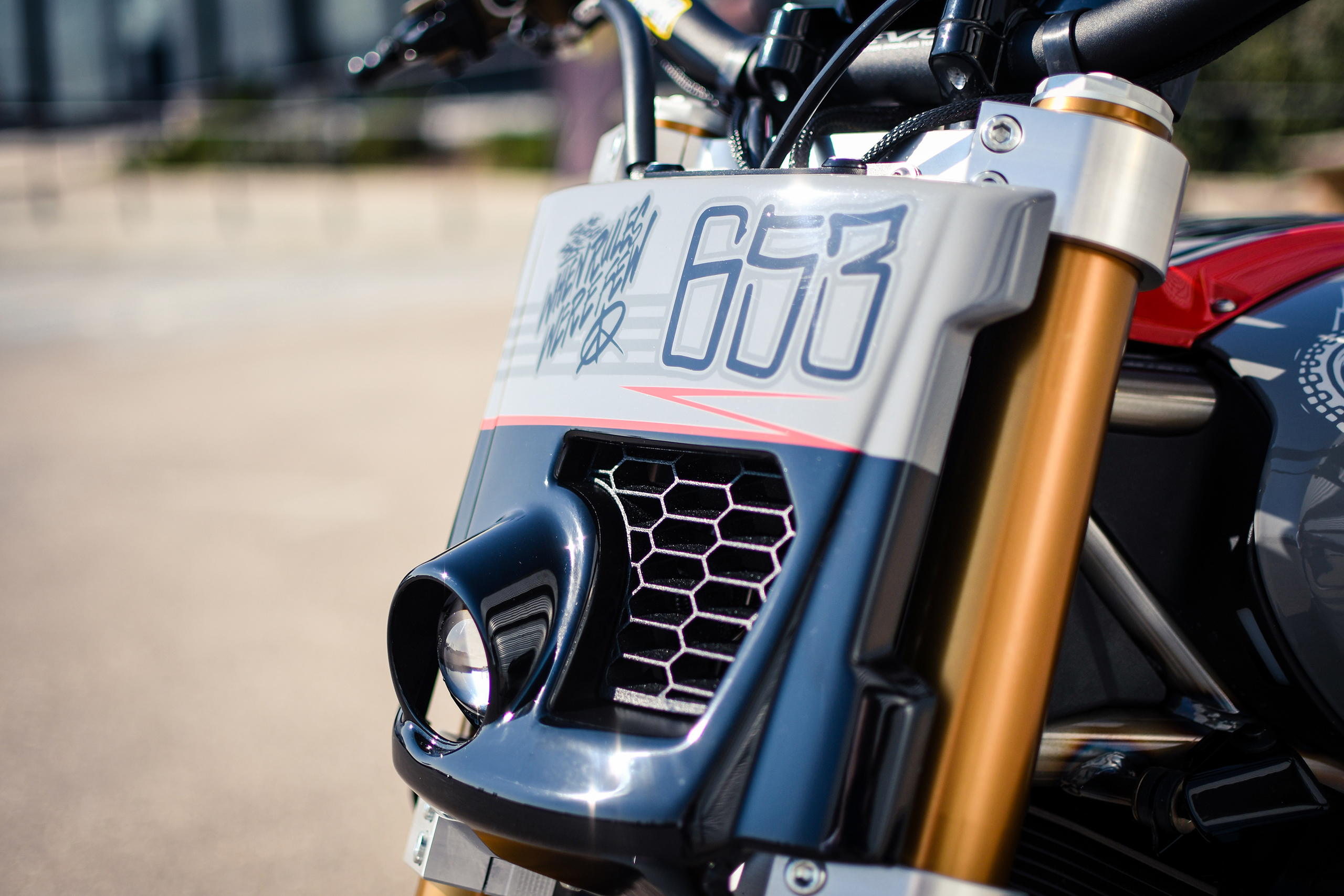 Après avoir construit une foule de customs basées sur la plate-forme, Thomas Castany et Alexis Masin d’Indian Metz ont décidé qu’ils voulaient quelque chose d’amusant et de ludique, et se sont inspirés du monde du motocross freestyle. Bien sûr, ils n’étaient pas intéressés par les backflips ou les whips, l’idée était de créer quelque chose qui prenait le plaisir du FMX et le traduisait sur la route. Combinant avec leurs amis de L’Atelier 216 et des sponsors tels que Fasthouse, les travaux ont rapidement commencé. J’ai eu l’immense chance de shooter la bête !
